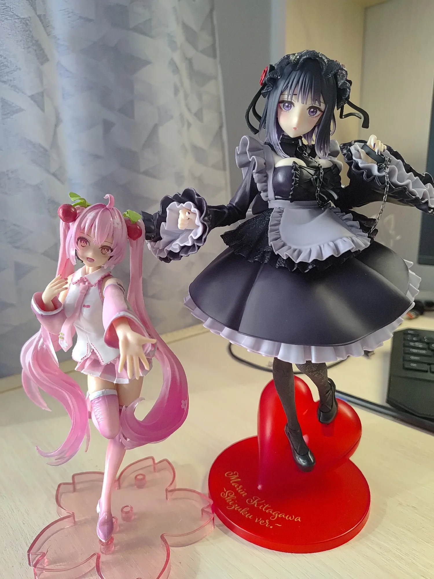 From the popular My Dress-Up Darling series comes the T-Most Marin Kitagawa (Shizuku Kuroe) figure by Taito. This beautifully sculpted collectible showcases Marin in her Shizuku cosplay, standing atop a heart base with a memorable and expressive pose. A striking centerpiece for collectors who love standout character displays.
