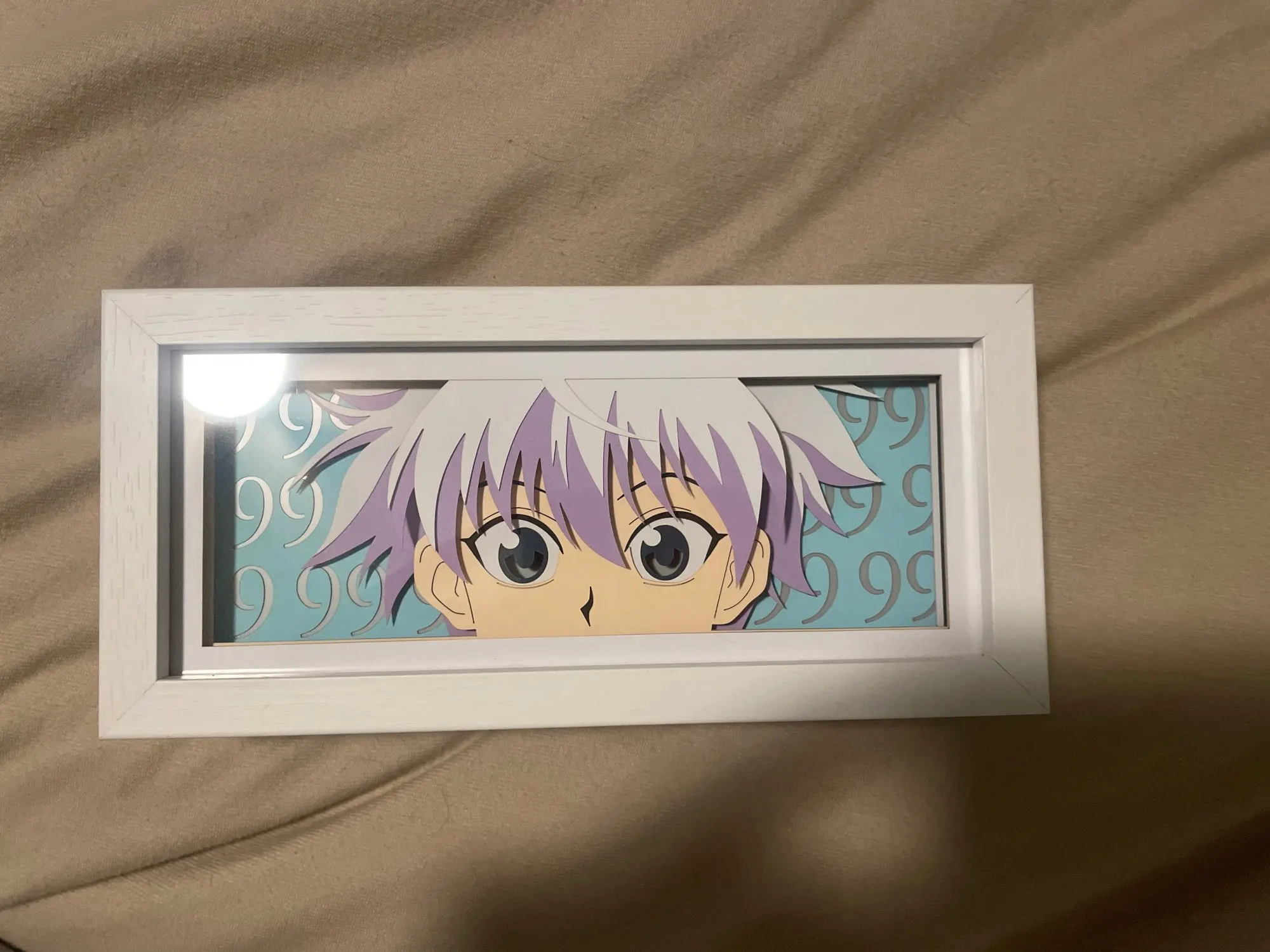 A beautifully layered paper-cut LED light box featuring your choice of Hisoka, Gon, or Kurapika. Each design creates a vivid 3D effect, blending craftsmanship and ambient lighting into a standout display piece.